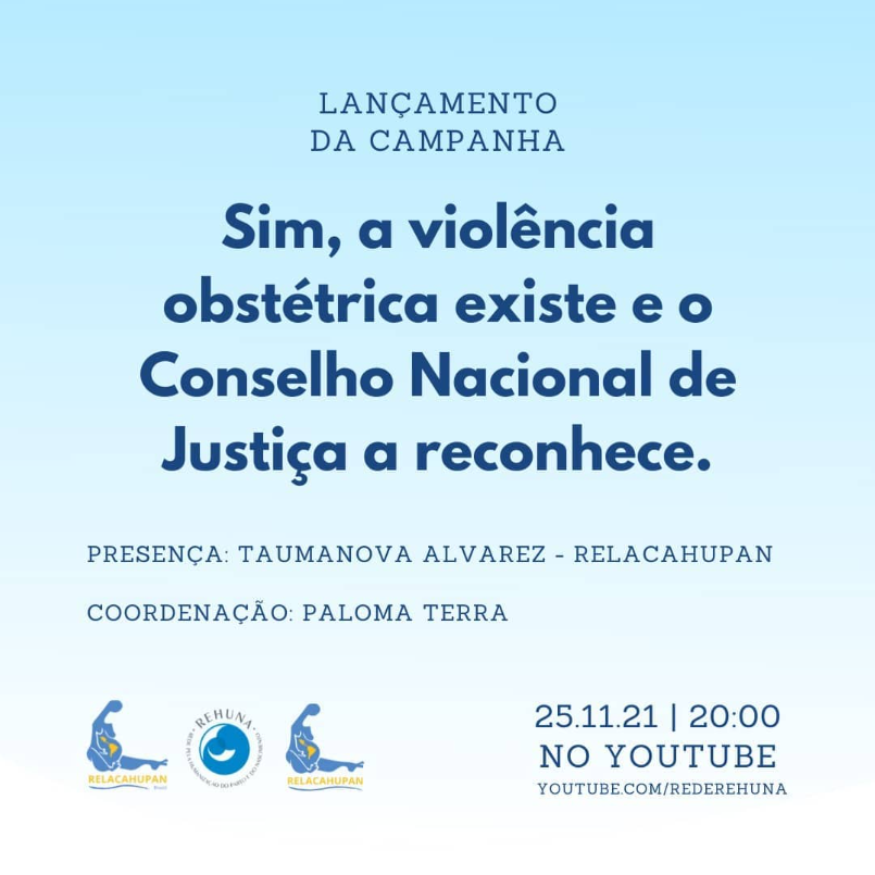 E 2021 a ReHuNa se uniu à proposta da RELACAHUPAN (Rede Latino Americana e do Caribe pela Humanização do Parto e Nascimento) e trabalhou o tema “Sim, a Violência Obstétrica existe”, mas foi além, acrescentando que o Conselho Nacional de Justiça a reconhece, uma vez que o CNJ havia mencionado a Violência Obstétrica no “Protocolo para Julgamento com perspectiva de gênero”, publicado em outubro de 2021.