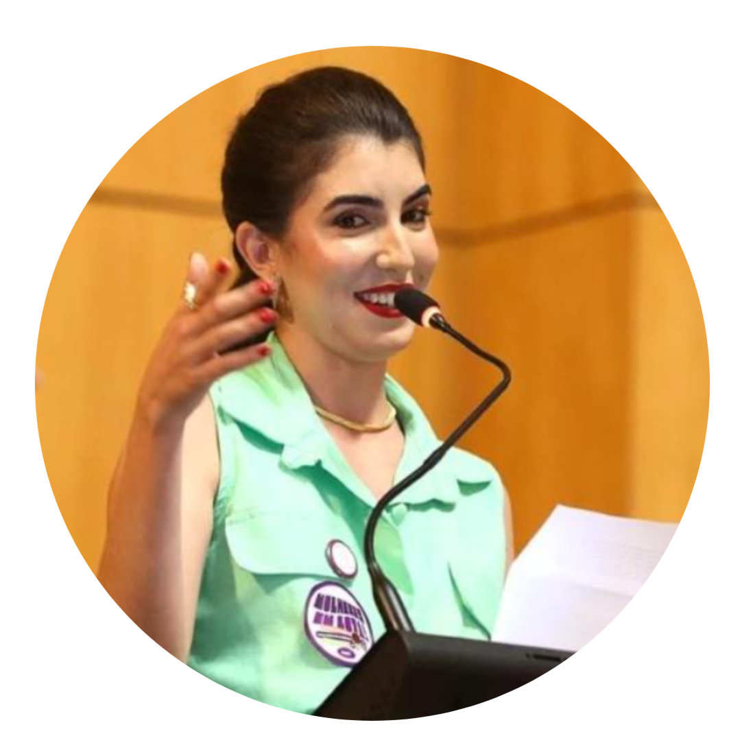 Ativista de Direitos Humanos. Autora do livro “Violência Obstétrica Assistida: um Estado de Coisas Inconstitucional. Baseado em casos reais.” Advogada sênior do Mori Machado Advogados. Professora do curso de pós-graduação em Prevenção à Violência Obstétrica do Centro Universitário Cejusc e do programa Saber Direito da TV Justiça sobre direitos da gestação, parto e nascimento. Diretora do Departamento Jurídico da Rede pela humanização do parto e nascimento – REHUNA desde 2021. Esteve como Superintendente da Criança, adolescente e juventude do Estado de Goiás em 2020 e Diretora Estratégica do Coletivo Nacional de Advogada entre os anos de 2019 a 2023. Foi consultora especial da Comissão da Mulher advogada da OAB-GO na gestão do triênio de 2021/2024. É palestrante à nível nacional e autora de artigos publicados, sendo dois em revistas internacionais, um deles foi apresentado na conferência internacional em Freiburg, Alemanha. Possui graduação em Direito e ampla expertise na área de violência obstétrica. É especialista em Direito Empresarial na Fundação Getúlio Vargas. Tem formação como doula pelo Instituto Federal de Goiás – IFG e formação completa em liderança pela organização Chilena Cóndor Blanco.